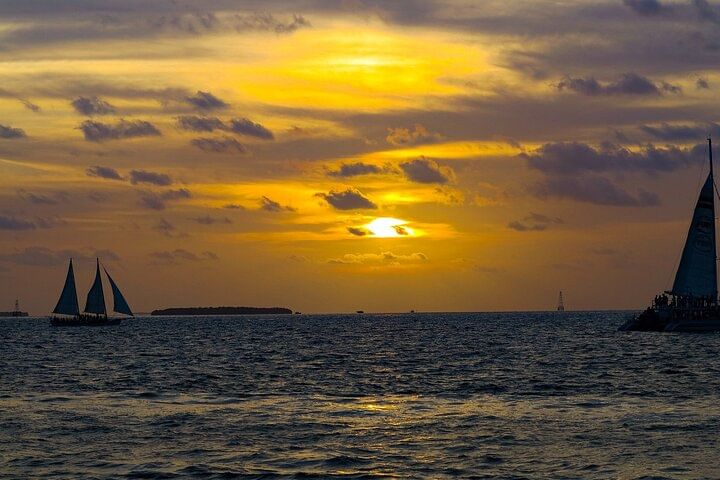As the sun begins to set, painting the sky in shades of orange and pink, it's time for the next part of your adventure: a two-hour Catamaran Sunset Cruise. There's something magical about watching the sun set over the ocean, and our sunset cruise offers the best seats in the house. As we glide along the water, you'll be treated to stunning views of the Key West coastline and the endless ocean beyond.