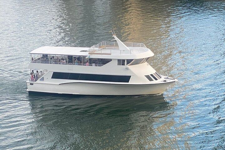 Enjoy a cash bar on board serving beverages and snacks. Our fleet consists of a bi-level yacht with air conditioning and first level large open windows and shaded top deck.